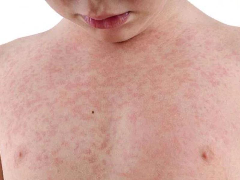 - بثورات پوستی صورتی یا قرمز رنگ که ابتدا روی صورت ظاهر شده و سپس به سایر قسمتهای بدن گسترش مییابند